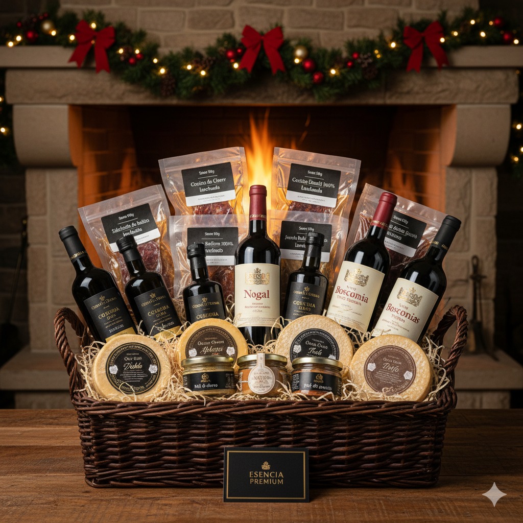 La máxima expresión de la gastronomía gourmet. Esencia Premium reúne jamón ibérico, vinos de prestigio, aceites de cosecha temprana y una selección de embutidos y quesos para un regalo navideño inolvidable.